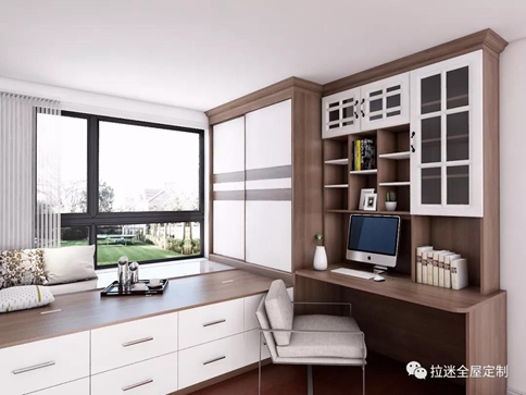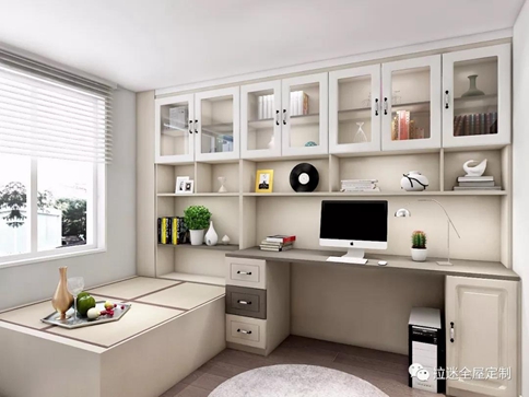 榻榻米是书房的最佳伴侣,在小小的书房内,榻榻米与书桌、书柜一体化搭配,功能强大。而且榻榻米自身强大的储物功也可以满足储物需求,让整个空间更加干净整洁。▼