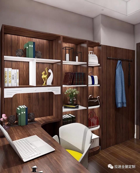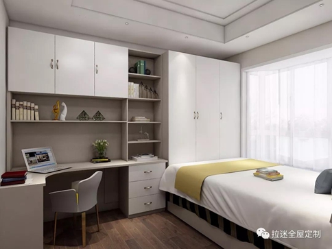 对于小户型而言,在有限的面积内实现自己想要的一些功能是需要花更多心思的。比如写字台的设计,可以集书桌、书柜、衣柜、展示柜等等功能于一体,相当于节省了不少空间。