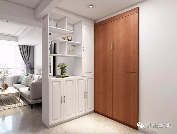 而玄关作为入户第一眼看到的空间,决定着我们进入门后的情绪感受,所以玄关隔断的颜色需配合整体配色。