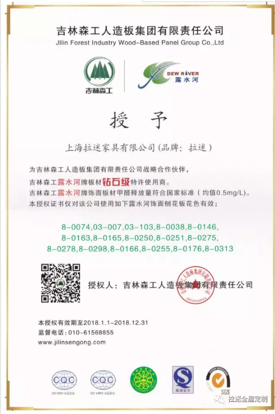 拉迷与吉林森工合作,成为吉林森工的钻石级战略合作伙伴,板材板材的甲醛释放量远远低于国家E1级环保标准,达到了≤0.5mg/L的E0级环保水平。