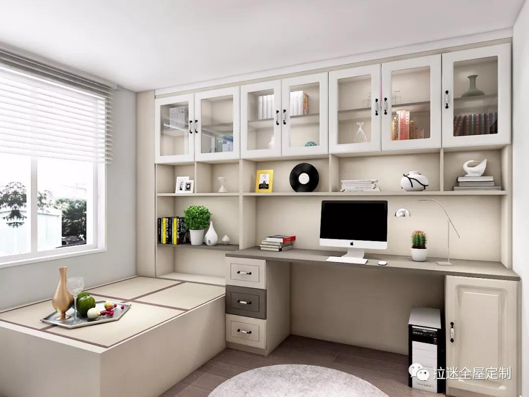 如果因户型面积受限,无法拥有一间独立书房的话,可以把榻榻米空间打造成一个小型书房,更能展现一分恬静的感觉。