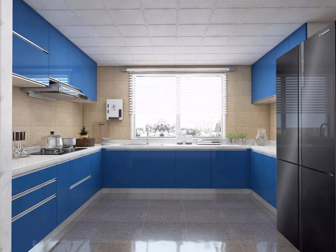 除了灰色和白色,其他色系的橱柜也很受欢迎,比如在夏日带来清凉感觉的蓝色,舒适温馨的淡黄色,清新自然的胡桃木色。可以用简约的软装装饰效果,呈现出一个个时尚厨房。