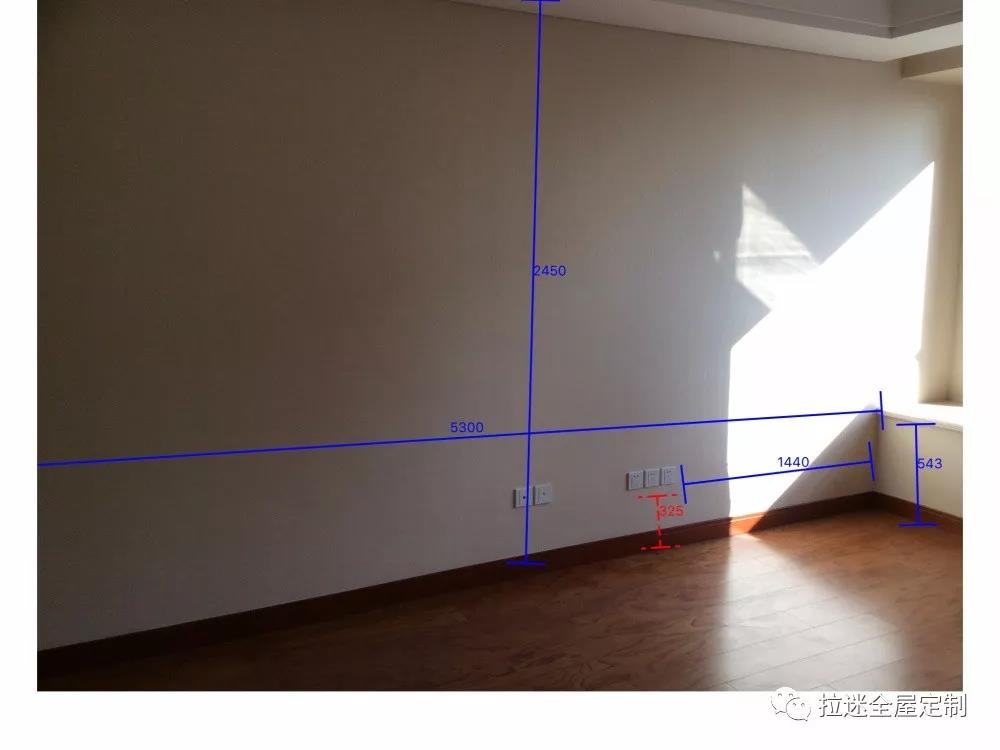 可以看到,拉迷派出设计师进行上门量尺时,整个房间还是空荡荡的。设计师对房间的空间大小进行一个细致的测量,这一点决定未来家具安装的实际效果。
