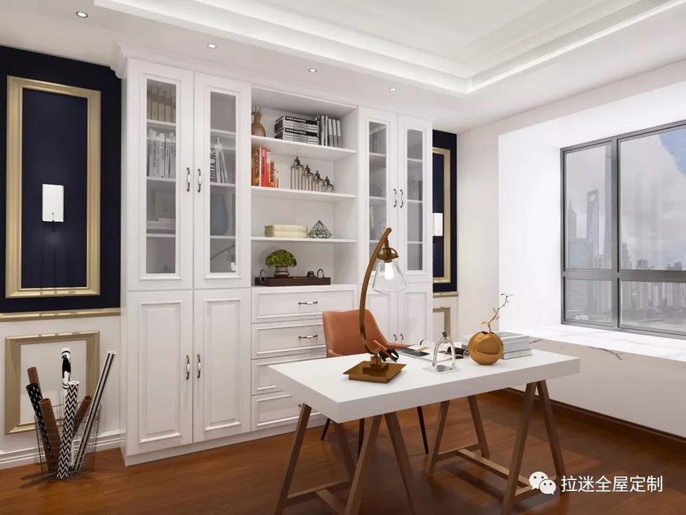 通常有一个中轴线,成左右对称。这个中轴线可以是柜体本身,也可以是一张书桌,
