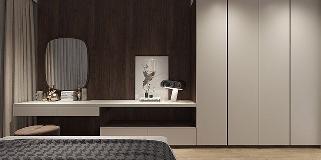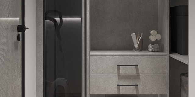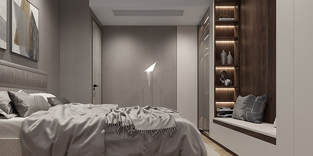 莫尔德与沙漠灰的质感提升了整个飘窗柜高级感。