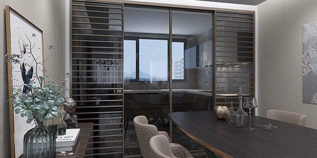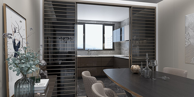 同时中空门也能保证厨房的杂音不会干扰到客厅会客。