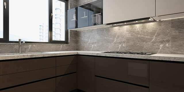 墙面的大理石纹理瓷砖更显得大气整洁。