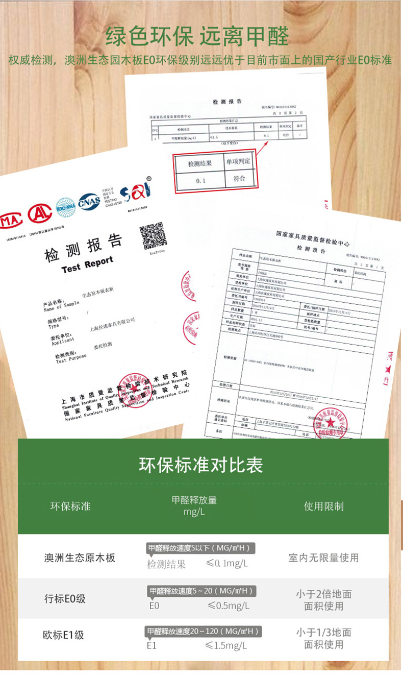 我乐家居产品出众的环保性能有口皆碑,采用“E0”级环保板材,其甲醛释放量≤0.06mg/m³,