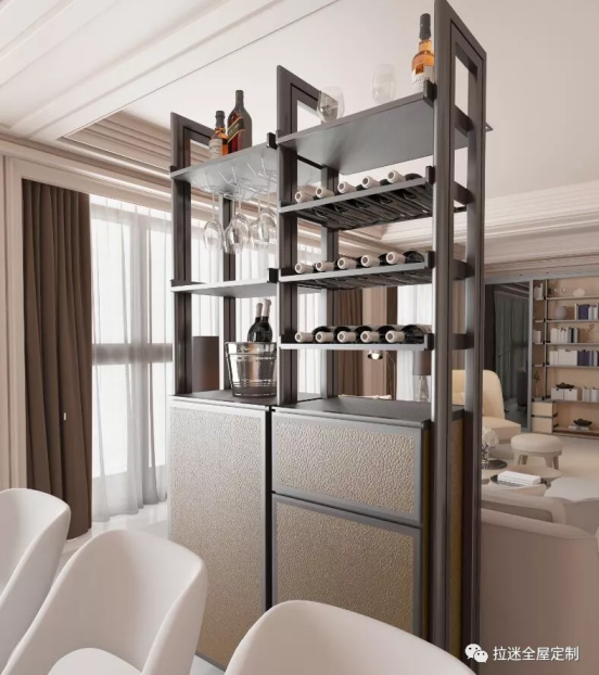 玄关作为入户第一眼看到的空间,决定着我们进入门后的情绪感受,所以玄关隔断的颜色需配合整体配色。